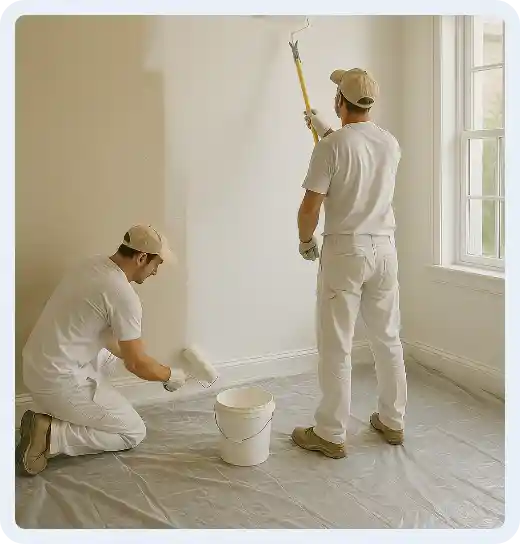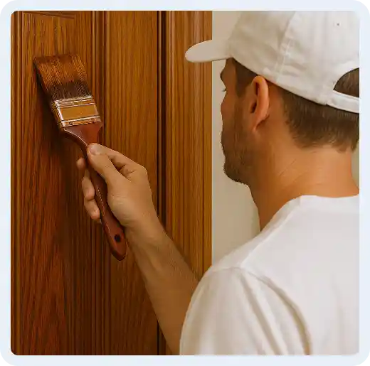 Nos artisans préparent les surfaces avec soin : rebouchage, ponçage et sous-couche adaptée. Nous appliquons ensuite des peintures résistantes et sans odeur, pour un rendu lisse, uniforme et durable.